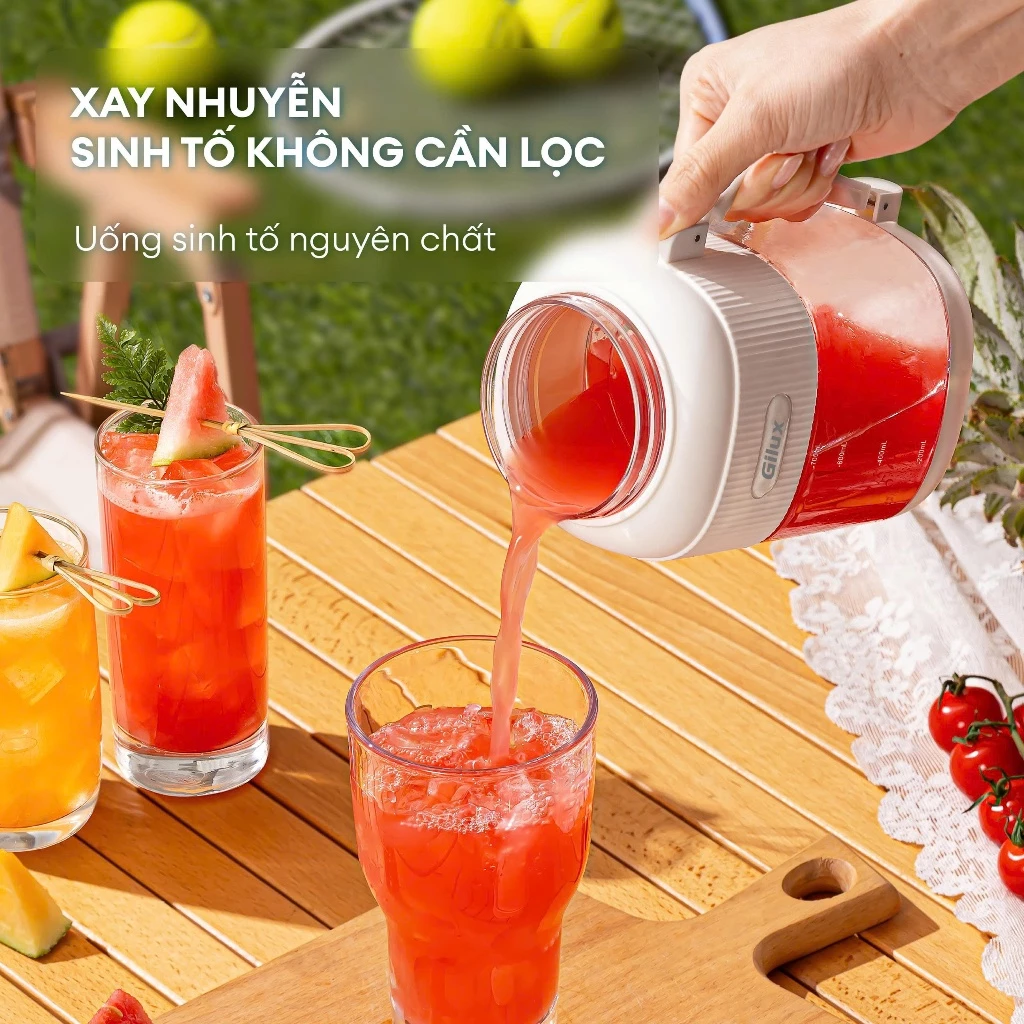 Điểm đặc biệt nhất của máy xay sinh tố cầm tay GLS95 chính là tính năng “Xay – Uống – Mang đi” chỉ với một chiếc máy duy nhất. Bạn không cần phải rót ra ly, giúp tiết kiệm tối đa thời gian dọn dẹp. Thiết kế tích hợp nắp phụ và ống hút đi kèm biến chiếc máy xay trở thành một bình nước thời trang trong tích tắc.